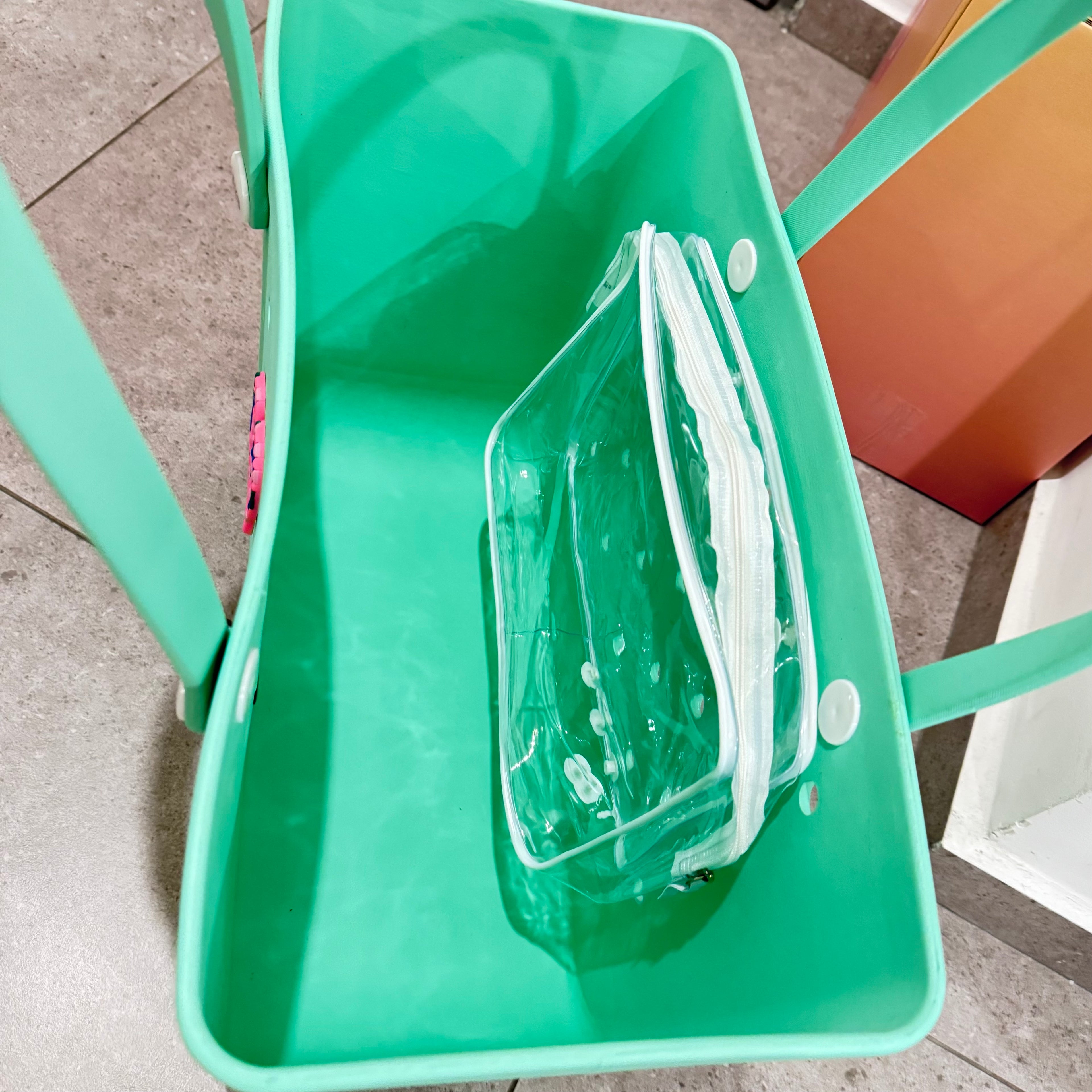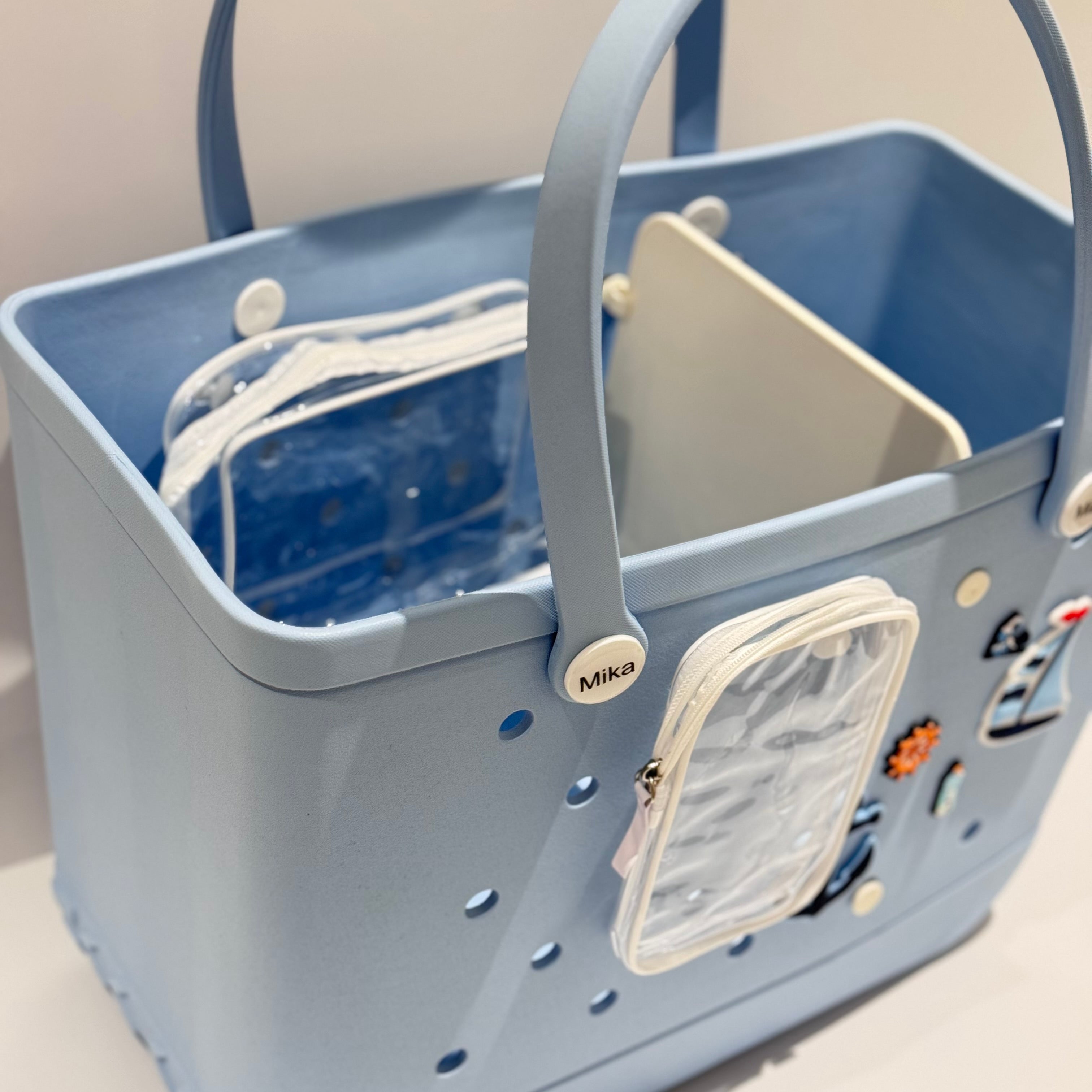 ערכת רחצה חכמה שני תיקי רחצה אחד גדול ואחד קטן שנתלים בקלות על תיקי מיקה
